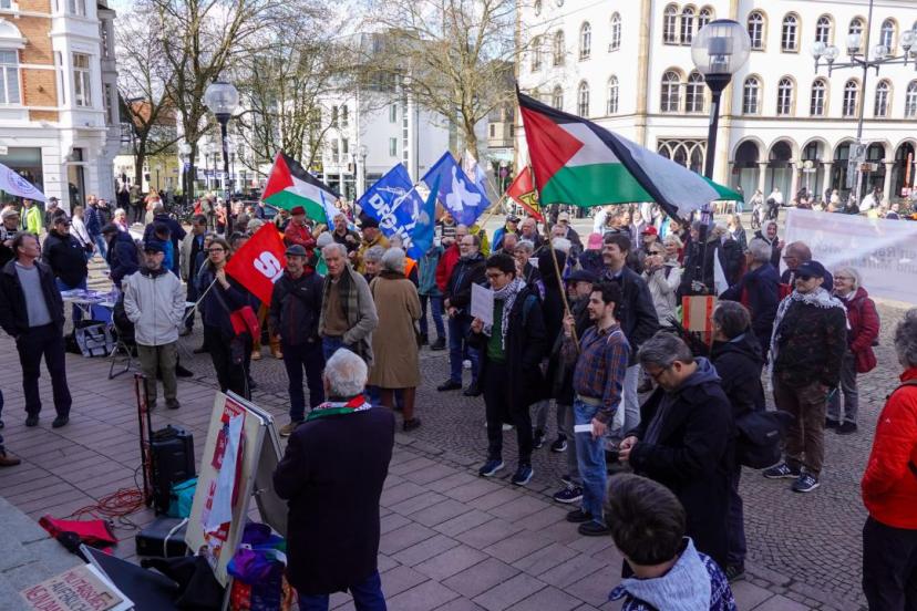 Osnabrück Barış Girişimi (OFRI) tarafından Osnabrück Tiyatro Meydanı'nda, "Savaşları reddedin-Barışı sağlayın" temasıyla protesto gösterisi düzenlendi.