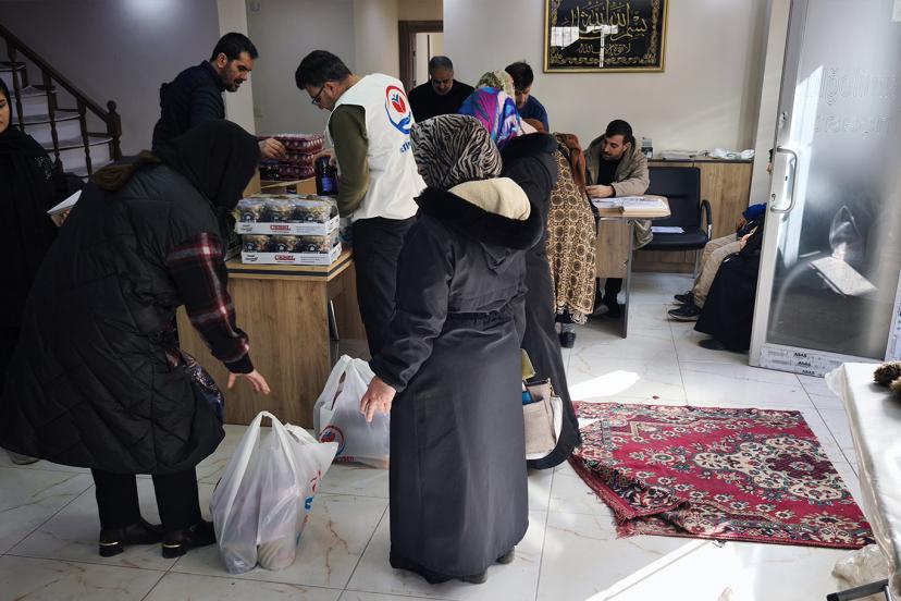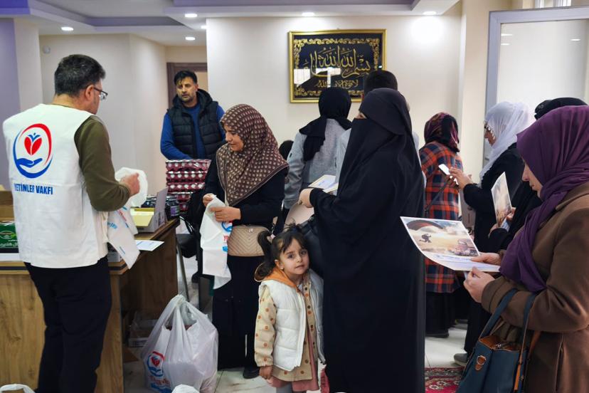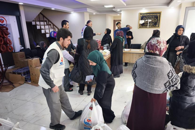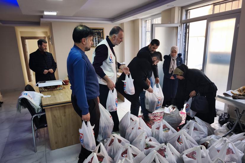 Hayırseverlerin desteğiyle alınan ürünler gönüllülerce hazırlanarak vakıf binasında ailelere teslim edildi.