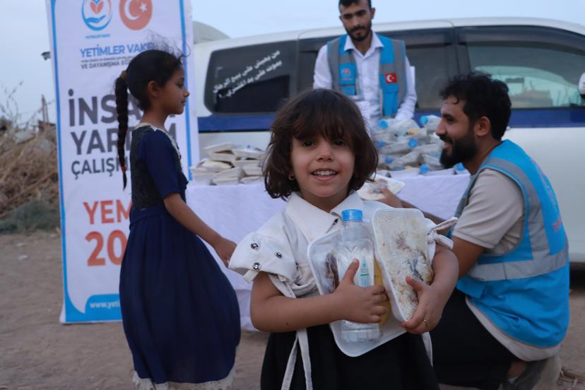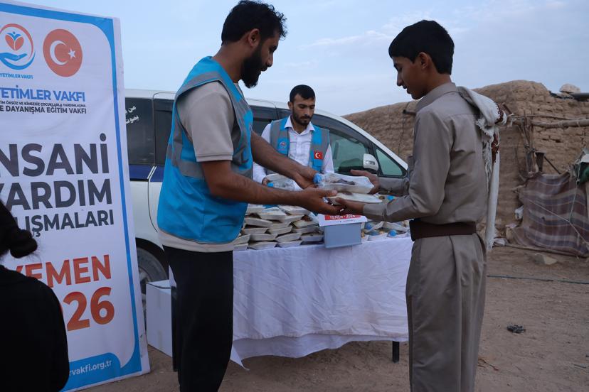 Kadir Gecesi dolayısıyla Yetimler Vakfı, hayırseverlerin bağışlarıyla Yemen’de yüzlerce ihtiyaç sahibine iftar yemeği ulaştırdı.