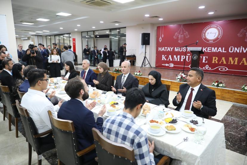 Özvar, bölge rektörleri ile yapılan toplantının ardından Mustafa Kemal Üniversitesi ile Türkiye Gençlik Vakfı (TÜGVA) tarafından üniversitenin yemekhanesinde düzenlenen iftar programına katıldı. Öğrencilerle birlikte iftar yapan Özvar’a Hatay Valisi Mustafa Masatlı ve bölge illerinin rektörleri de eşlik etti.