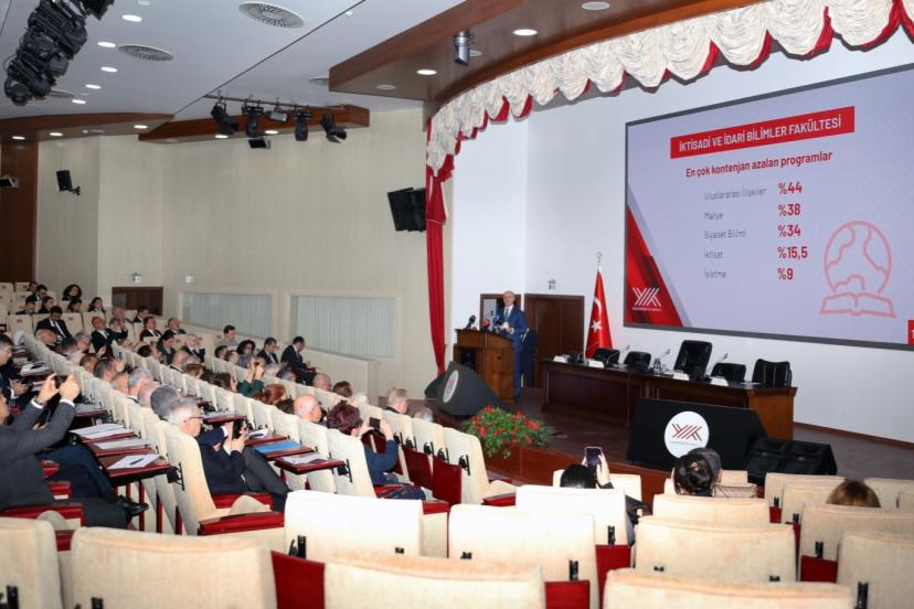 YÖK Başkanı Özvar, toplantıdaki konuşmasında 2023-2025 döneminde gerçekleşen kontenjan değişikliklerine ilişkin bilgi verdi.