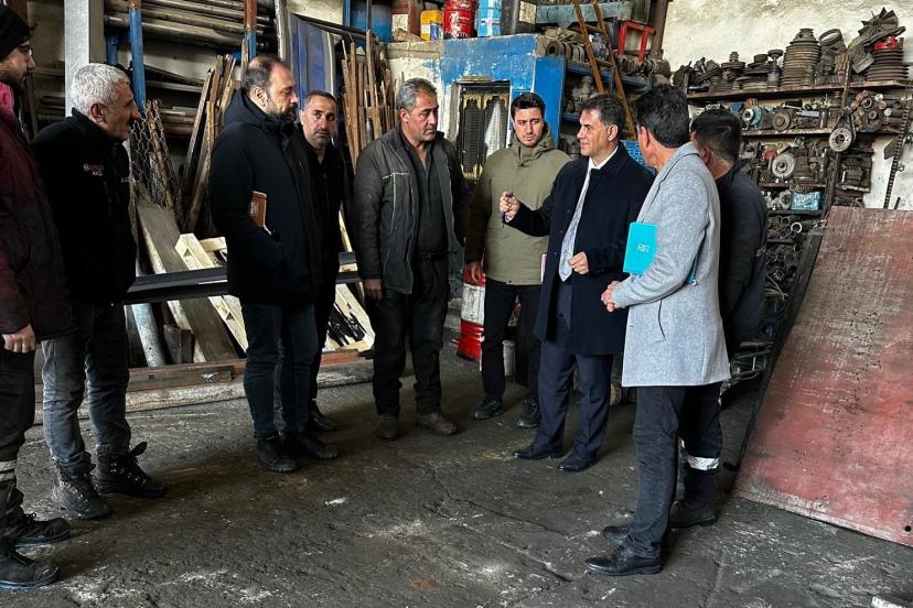 Hakkari Sanayi ve Teknoloji İl Müdürü Erol Baykara, Çevre, Şehircilik ve İklim Değişikliği İl Müdürü Cengiz Adıgüzel, DSİ Şube Müdürü Nihat Taş ile Sanayi ve Teknoloji Müdürlüğü Şube Müdürü Gökhan İstek ve Mühendis Nurullah Timurtaş’tan oluşan heyet, Yüksekova Küçük Sanayi Sitesi Kooperatif Başkanlığı’nı ziyaret ederek yürütülen çalışmaları yerinde değerlendirdi. Ziyarette hem mevcut esnafın sorunları dinlendi hem de ilçenin üretim kapasitesini artıracak yeni sanayi sitesi projesinin detayları ele alındı. İl müdürleri, kurumları tarafından yürütülecek çalışmalar hakkında bilgi vererek sürecin çözüm odaklı şekilde takip edileceğini vurguladı.