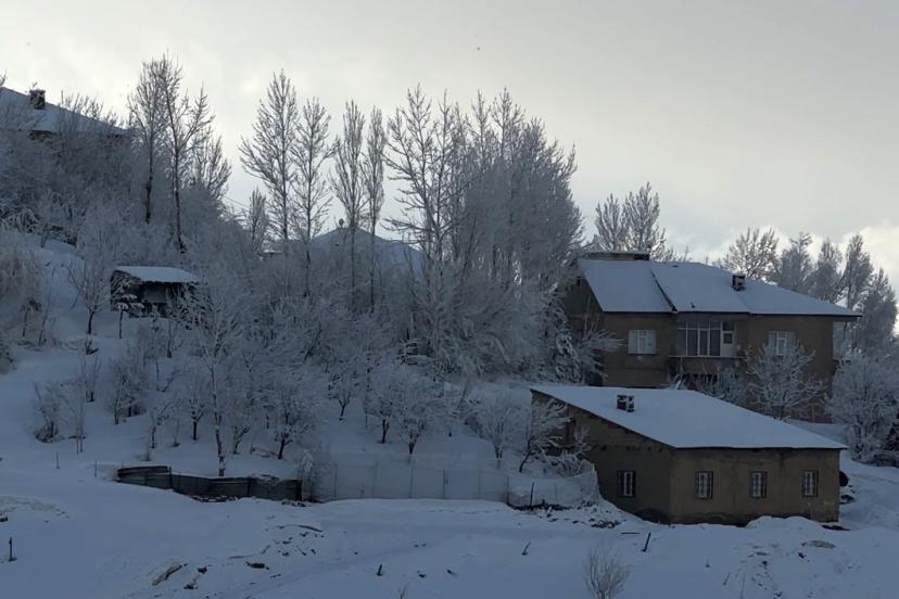 Hakkari’nin Yüksekova ilçesinde etkisini gösteren kar ve dondurucu soğuklar hayatı olumsuz etkilerken, ağaçlar ise kırağı tuttu.